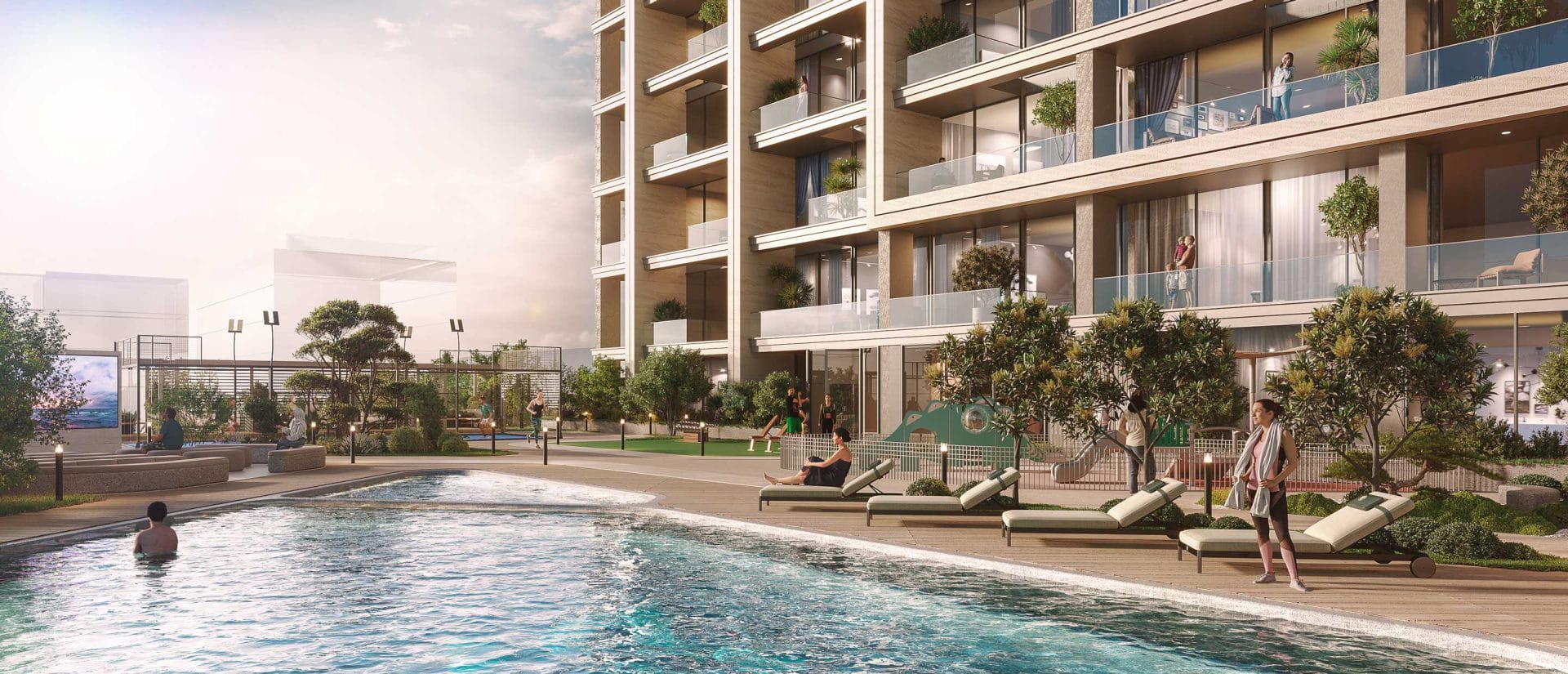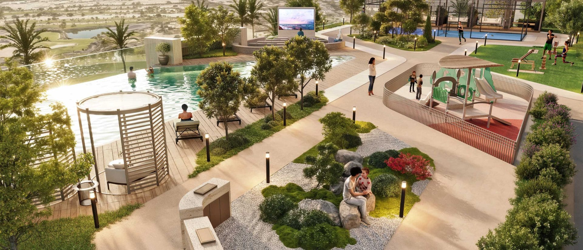 Residents will enjoy an impressive selection of amenities, including a swimming pool and children’s pool, indoor & outdoor fitness zones, a padel tennis court, cinema room, BBQ and outdoor dining areas, workstation spaces, and a hotel-style lobby. Families benefit from a dedicated children’s playground, while sustainability is embraced with electric vehicle charging stations.