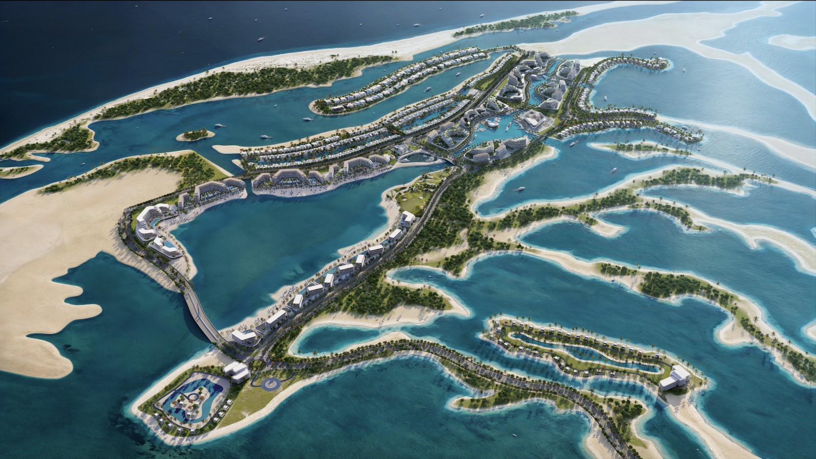 Siniya Island is a newly launched exclusive community located in Umm Al Quwain. This stunning neighborhood features beautiful apartments and villas with natural earth-tone designs. Each villa boasts direct waterfront access. The development also includes two branded resorts. Siniya Island – exceptional, because it is a natural (not artificial) island, where every building will be on the seashore and will have its own private beach. The bridge to the islands has already been built. In the entire Siniya islands, the prestigious developer – Sobha – is planning more than 15 phases of residential projects, and the resort will be fully operating by 2028.